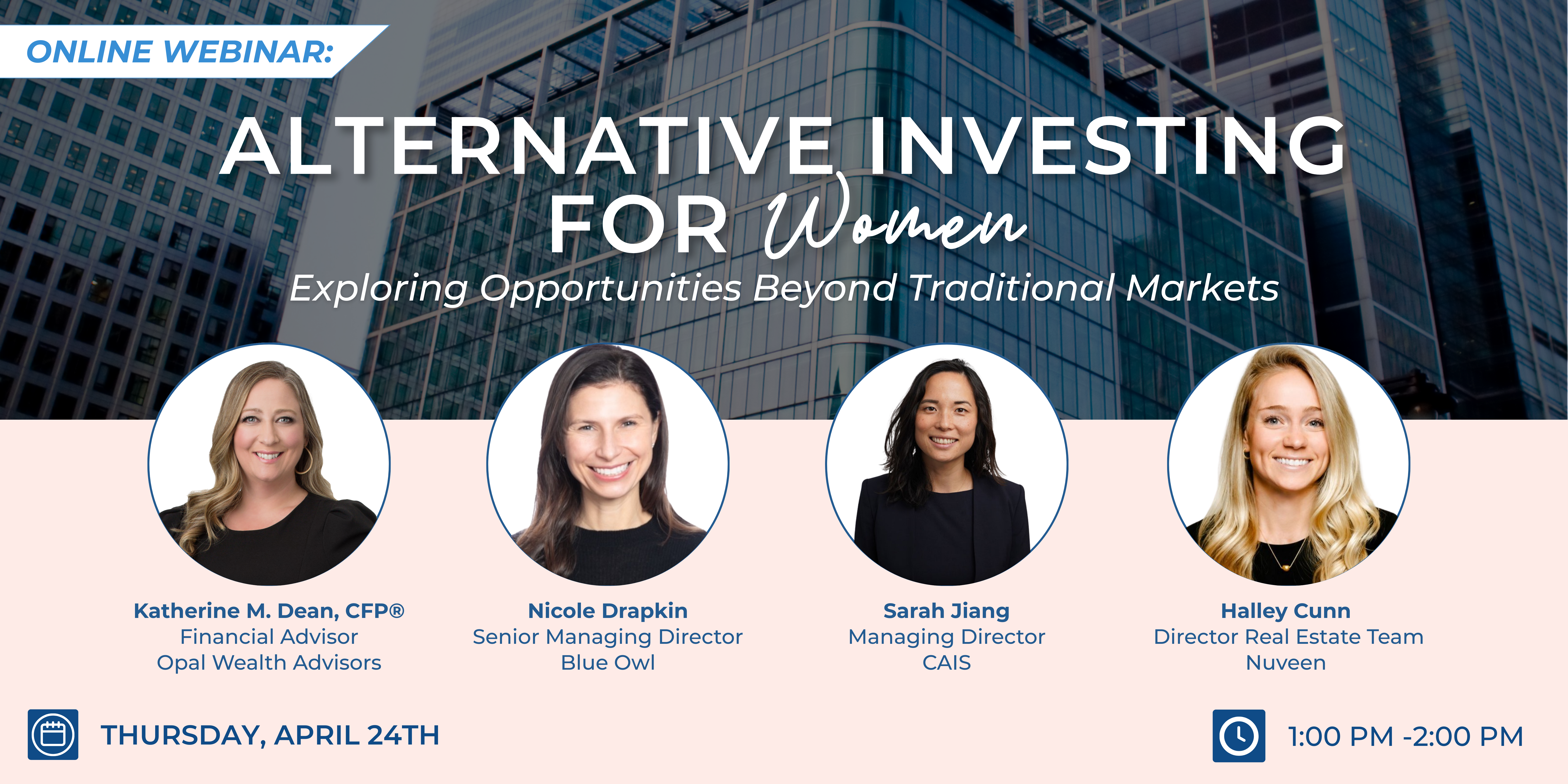 This isn’t your average investing webinar. It’s a space created for women who want more—from their portfolios, their opportunities, and their future. Discover how alternatives like private equity, real estate, and other asset classes can help you grow and protect your wealth in new ways.
