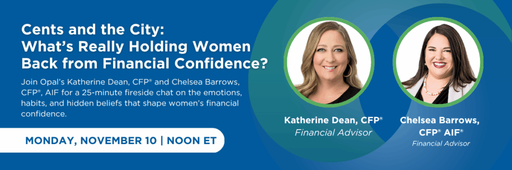 A 25-minute fireside chat where Katherine and Chelsea, advisors at Opal Wealth Advisors, kick off the new Cents and the City three-part webinar series — designed to help women build lasting financial confidence through clarity, calm, and control.
